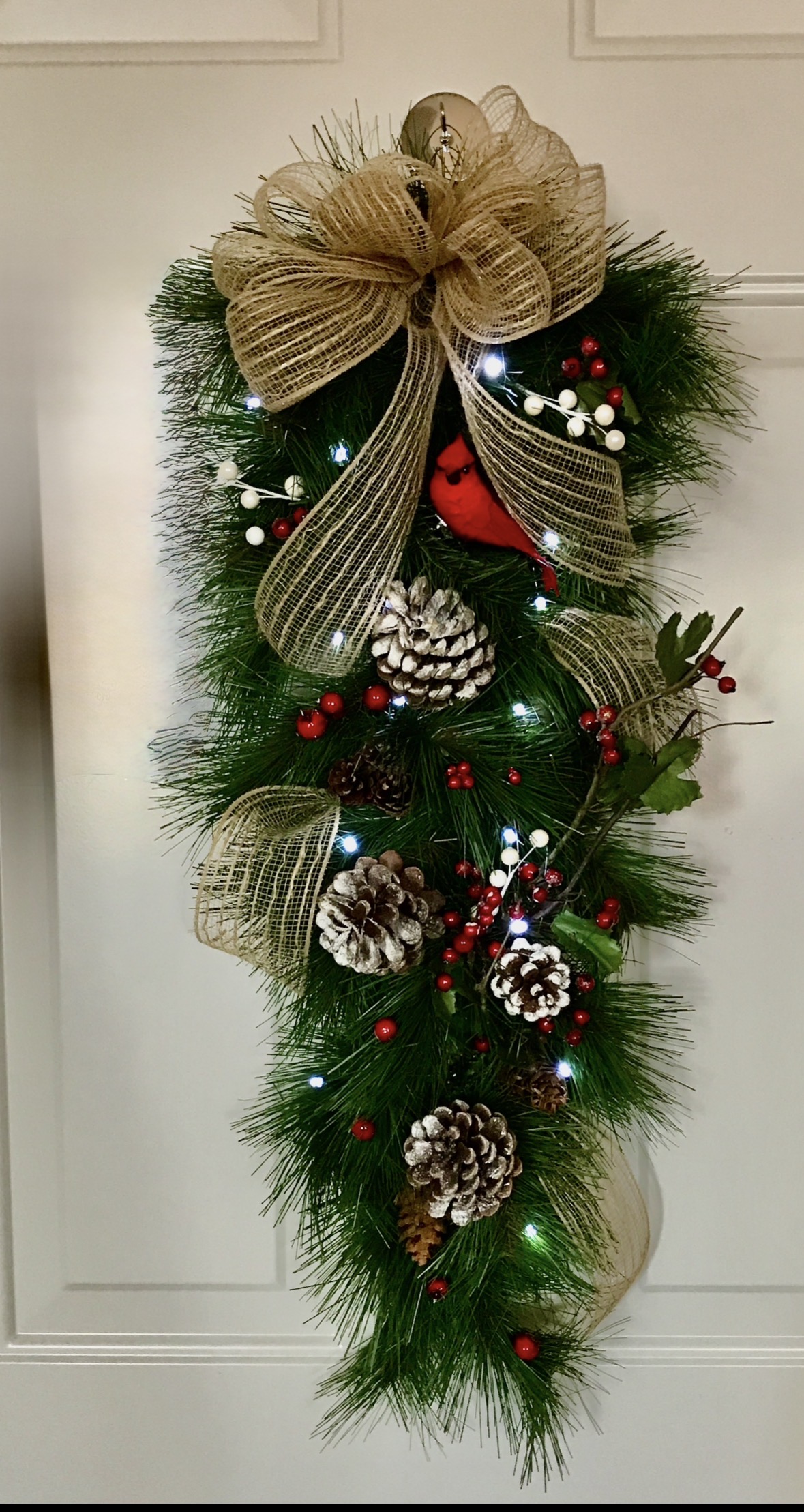 This adorable wreath shows off the love for your cat. Made with brown, tan mesh.The ribbon and bow is buffalo plaid brown, kitty paw and fish bone ribbon.
